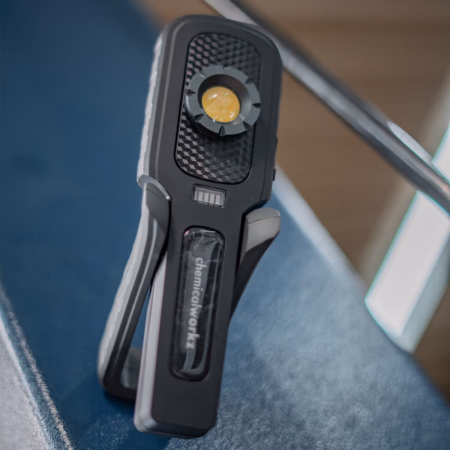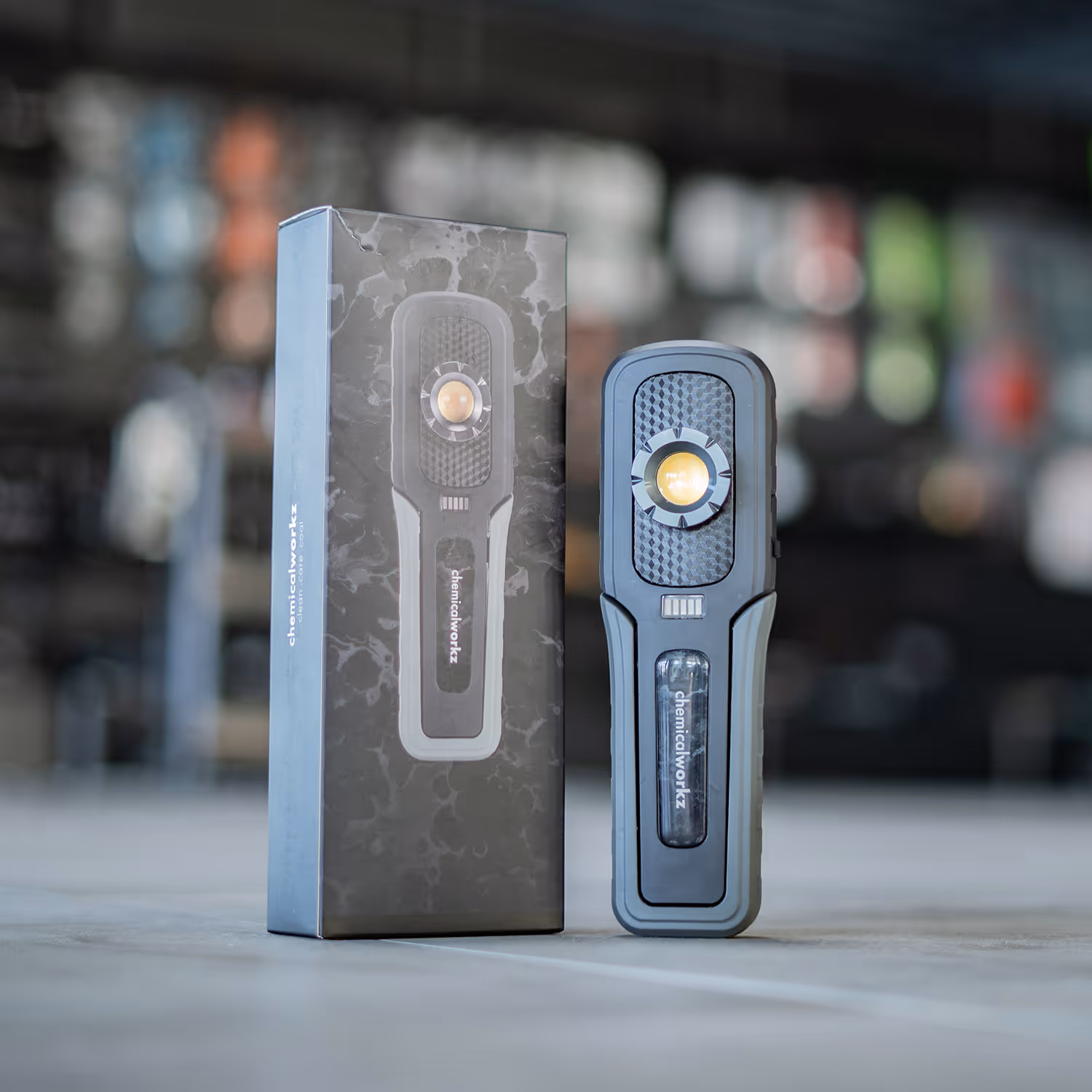 Präzise Lichtkontrolle für Defekte, Oberflächen und Detailarbeit. Die Control Light kombiniert 4 Lichtmodi, Magnetfuß und schwenkbaren Arm zu einer flexiblen Handlampe für Lackkontrolle, Politur und Werkstatt.